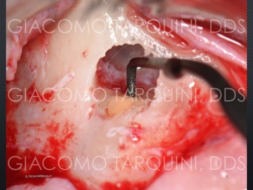 La breccia ossea viene ampliata al fine di consentire l'ingresso dell'inserto per la preparazione retrograda del canale