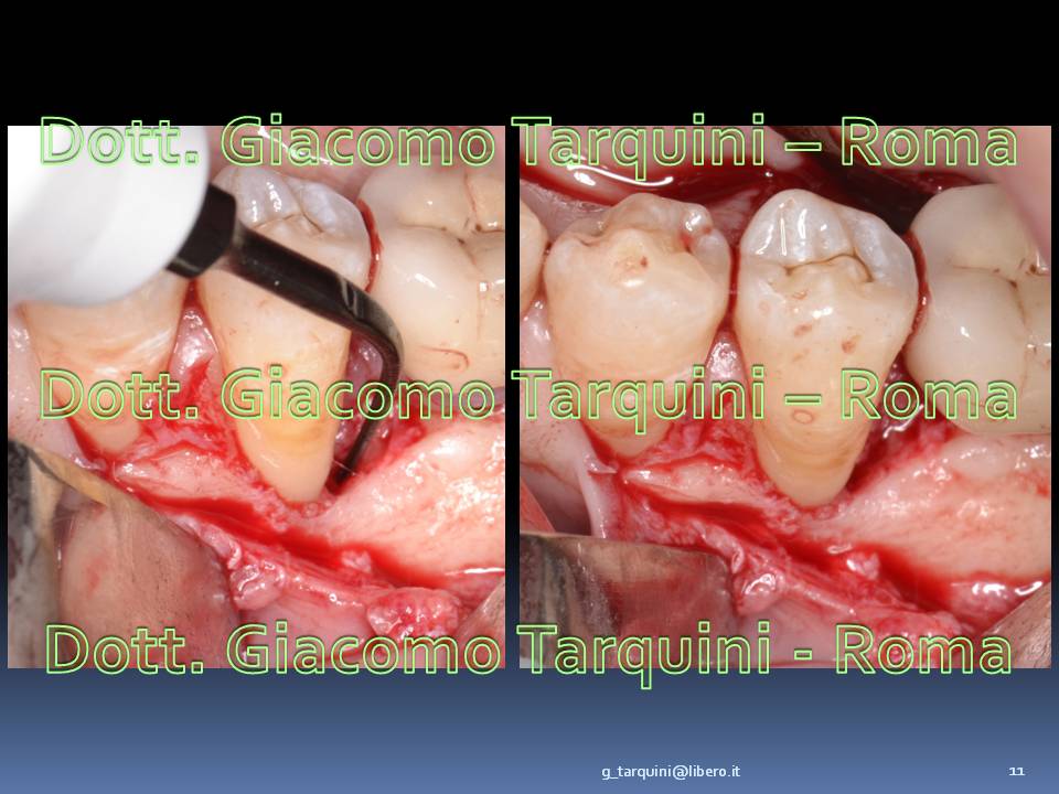 Bello e ben presentato.Domanda: l'innesto di biomateriale non entra in competizione con la ricrescita dei tessuti parodontali a partenza dalla radice e dalle fibre residue?